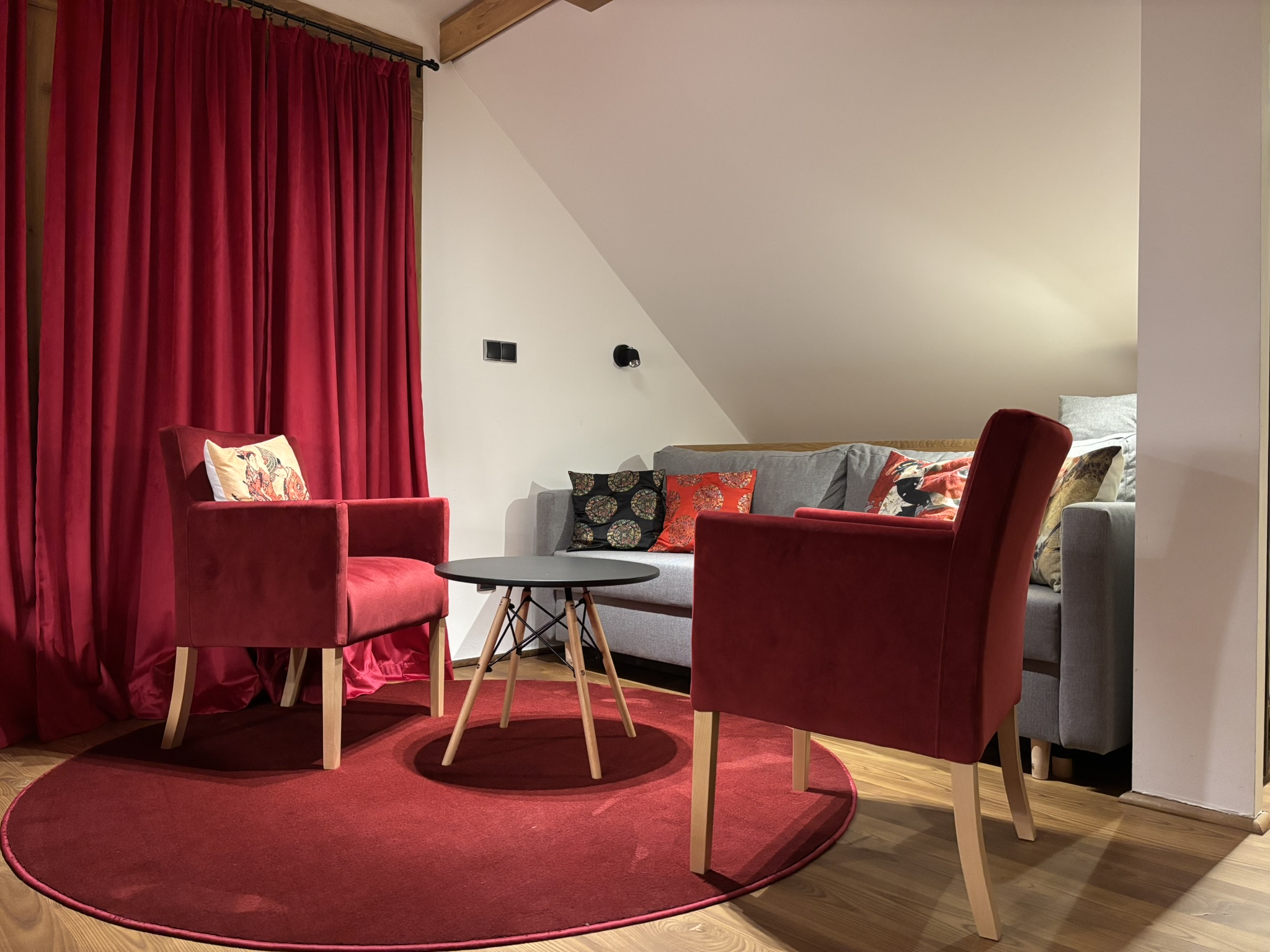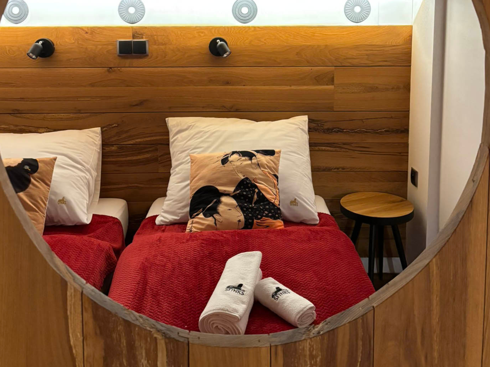 Pokój „Fuji Jama” przeznaczony jest dla 2 osób. Stoją tam dwa pojedyncze łóżka. Poza tym jest sofa wypoczynkowa, konsolka, własna łazienka i balkon. Cena 300 zł za dobę w okresie wakacyjnym oraz w pozostałych miesiącach dla pobytów nie krótszych niż 3 dni. W przypadku dwóch dni cena wynosi 340 zł na dobę.