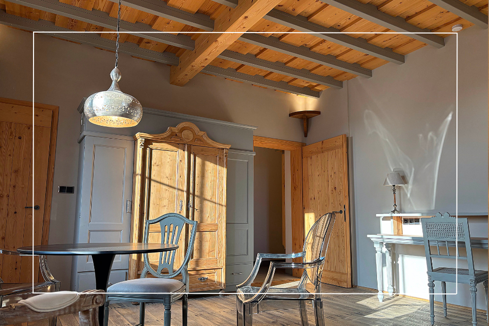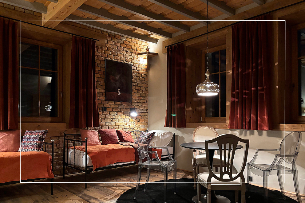 Pokój z werandą „Pod aniołami” jest dla 4 osób. Ma dwa pojedyncze łóżka, stół do spotkań, konsolkę, dużą szafę i łazienkę. Na werandzie, z której rozpościera się piękny widok znajduje się podwójne, ponadwymiarowe łóżko/legowisko oraz dodatkowa szafa. Cena 600 zł za dobę w okresie wakacyjnym oraz w pozostałych miesiącach dla pobytów nie krótszych niż 3 dni. W przypadku dwóch dni cena wynosi 680 zł na dobę.